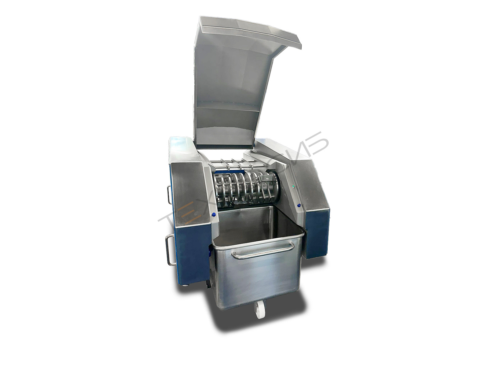 Промышленный дробитель SM 4000 бренда NIRO-TECH предназначен для высокоскоростного измельчения замороженных блоков мяса, сыра и других пищевых продуктов температуры до -22°С. Это оборудование известно своим качеством резки, позволяя получать на выходе хлопья различного размера (мелкие, средние, крупные) в зависимости от конфигурации.